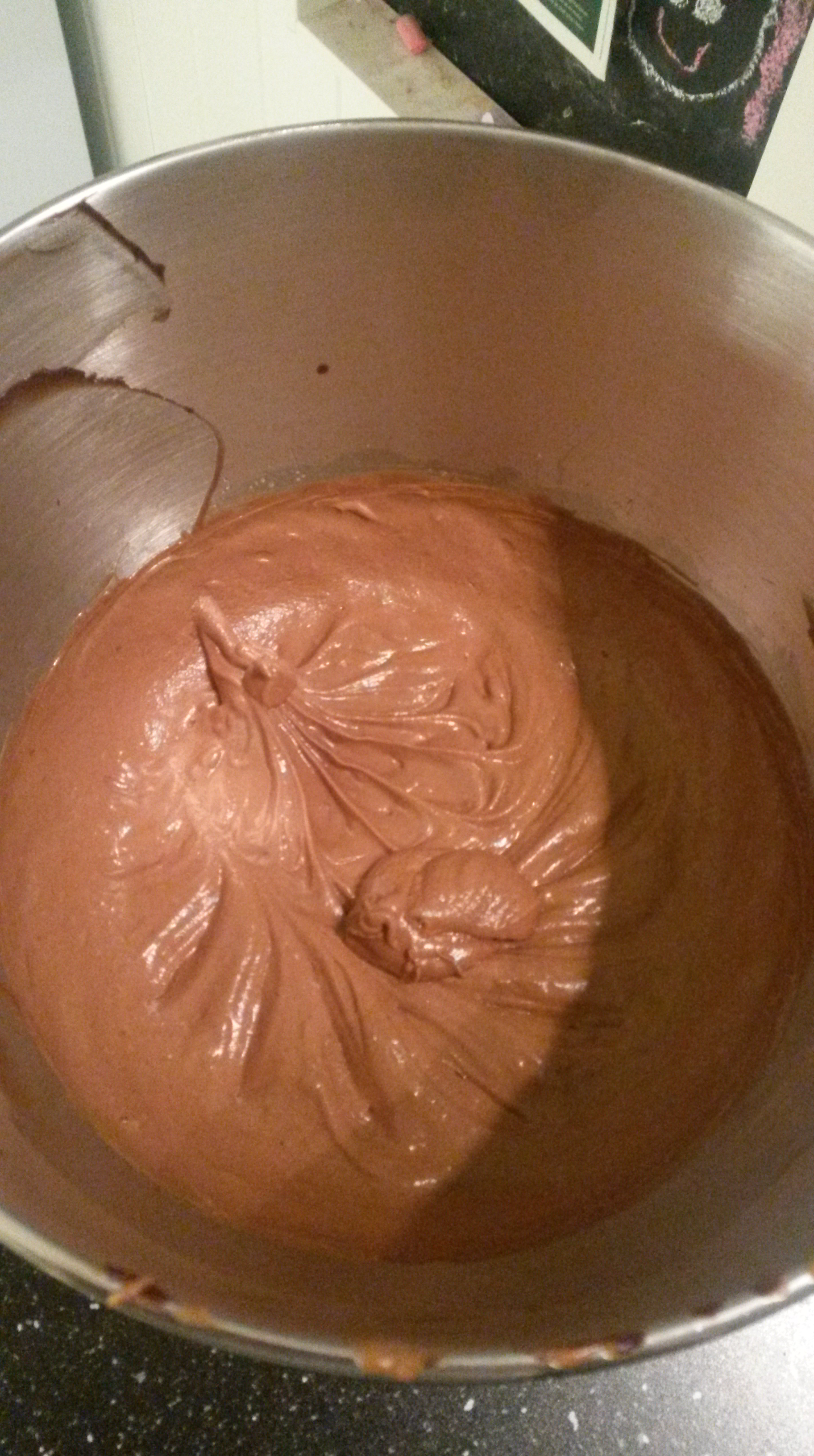 Her har jeg doblet oppskriften, og fikk nok røre til to sukkerbrød og to sukkerbrødmuffins slik at jeg kunne teste smakene før jeg monterte selve kaka.