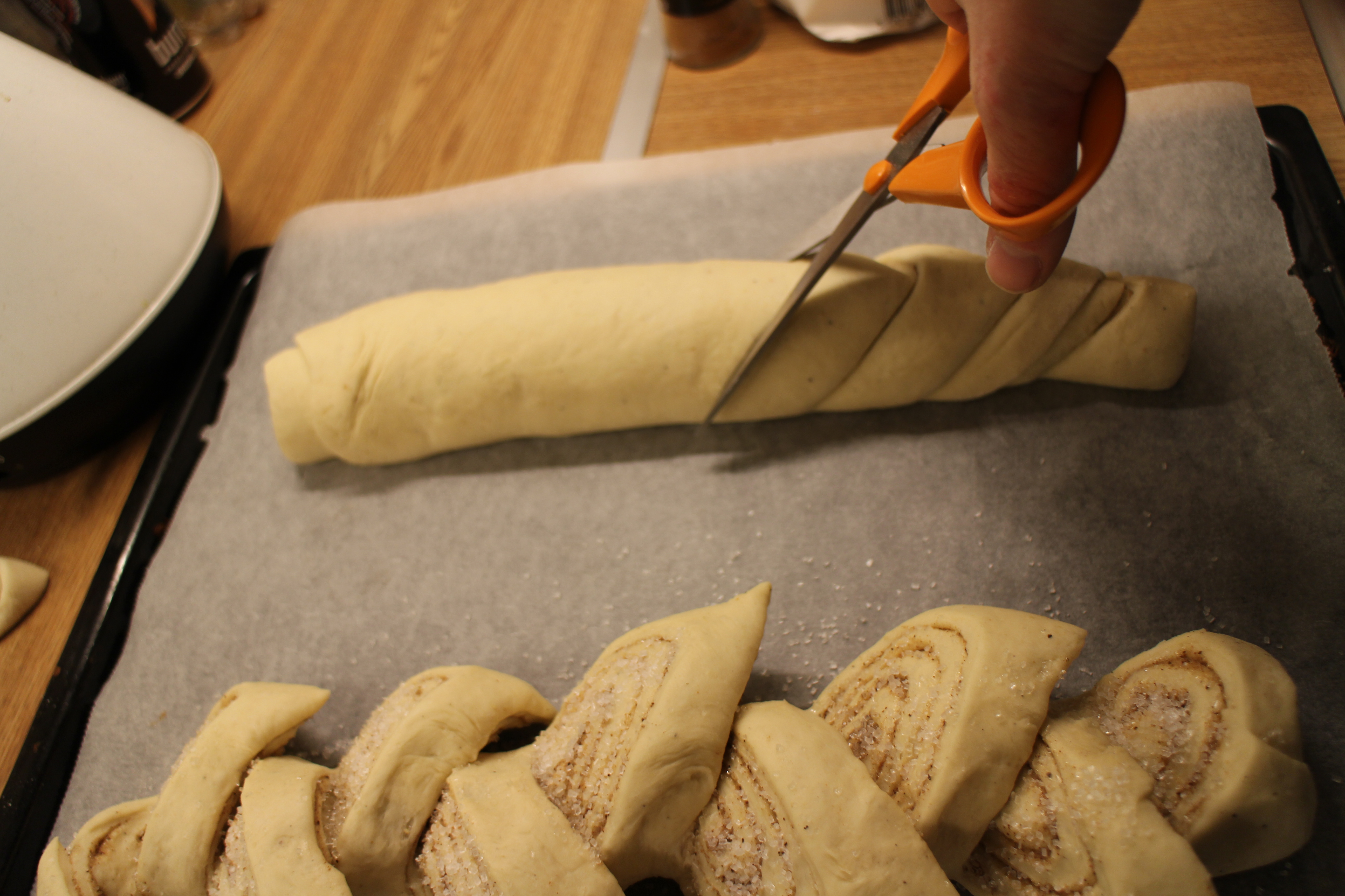 Mens kakebunnene stekte kan du gjøre klart appelsinene. Selv valgte jeg å skrelle selve appelsinbåtene også, ikke bare ta av skallet, men det er smak og behag.